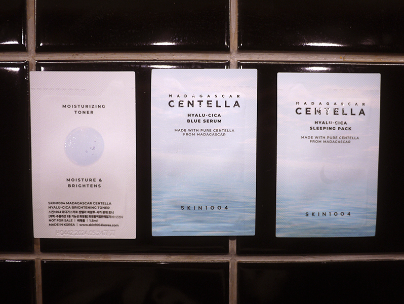 샘플로 온 토너로 피부결을 정리해 준 후에