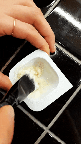 내장된 팩브러쉬로 둘을 잘 개어 섞어주세요.