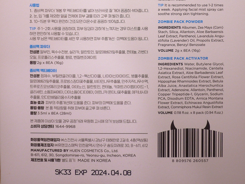 좀비뷰티 좀비팩~