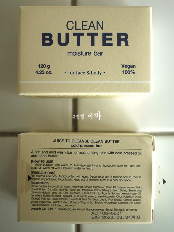 환경을 보호하는 버터 비누, 비건 클렌징 바 - 교차오염 없는 제조 시설 등의 심사를 거쳐 제조, 까다로운 프랑스 EVE-VEGAN 인증, 환경과 관련해 문제가 조명되고 있는 팜유, 아보카도 오일을 넣지 않고 콜드프레스드(저온압착) 방식의 식물성 오일을 가득 담은 제품 바디버든(몸에 쌓이는 해로운 화학물질의 총량) 줄이기, 쓰레기 줄이기 - 석유계 계면활성제, 인공색소, 방부제, 보존제를 사용하지 않음 - 고체형 제품으로 플라스틱 쓰레기를 배출하지 않음 - 소이잉크, FSC 인증 제지를 사용한 Earth-friendily 패키지 사용 |