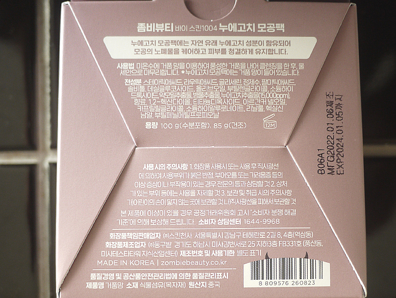 좀비뷰티 누에고치 모공팩입니다.