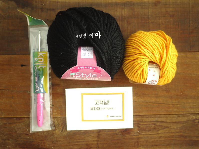 6호 코바늘, 스티치실 2볼, 돗바늘(잃어버리지 않도록 작은 봉투에 넣어 주는 센스~)