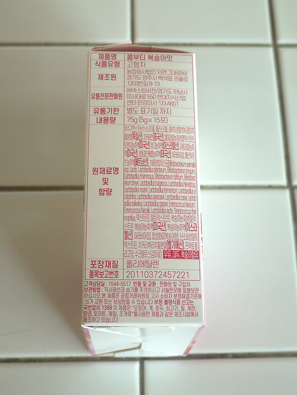 스틱형콤부차가 15개 들어 있고요.
