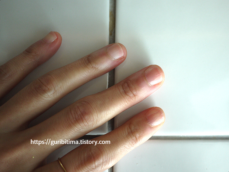 손톱에 착색이 전혀 없어요.
