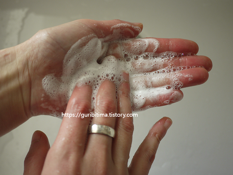 머리를 감아보니 쫀쫀하게 형성된 거품이 머리카락을 엉키지 않게 보호해서