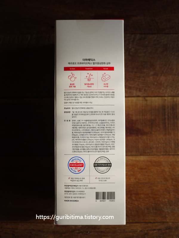 피부저자극테스트, 독일더마테스트 Excellent 등급, 탈모증상완화기능성 식약처보고 완료, 10가지 유해 성분 무첨가, 최고급 계면활성제와 안심하고 사용할 수 있는 자연유래성분으로 전성분 EWG 그린등급 사용, 두피와 모발에 가장 건강한 PH 5.5 약산성으로 유수분밸러스를 맞추고 피부 장벽을 세워 예민한 두피를 건강한 상태로 유지... 이렇게 안정성까지 제대로 챙겼으니까 그냥 믿고 사용하심 됩니다.