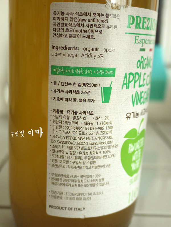 프레지오소 유기농 애사비 애플사이다비니거 사과식초 1L