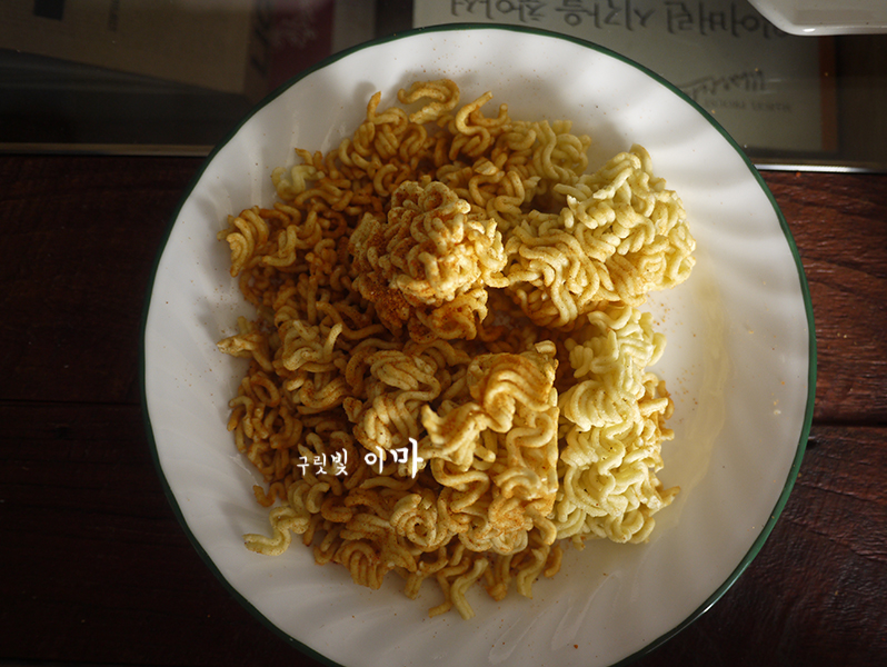 남은 라면 봉지째 주먹 파워 날리면서 뿌셔서 (은근 스트레스 해소용)