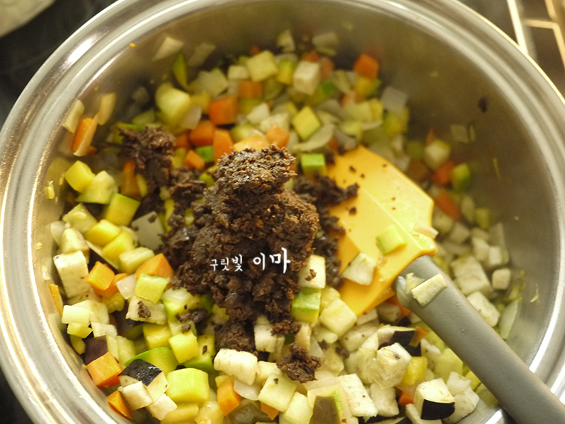 맛있는 집된장에 참기름 넣고 쓱썩쓱썩~ 비벼 먹었더니