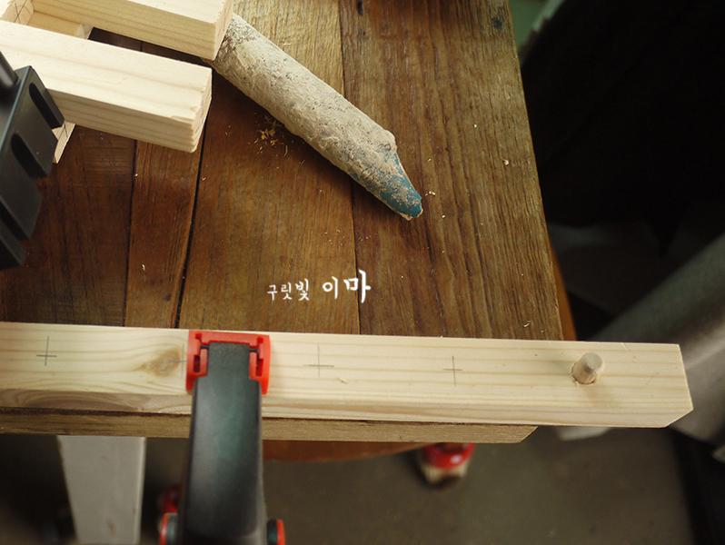 목심, 목심이 들어가는 구멍, 그리고 나무에 본드를 칠하고