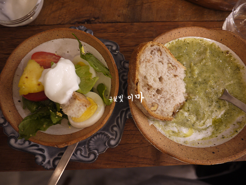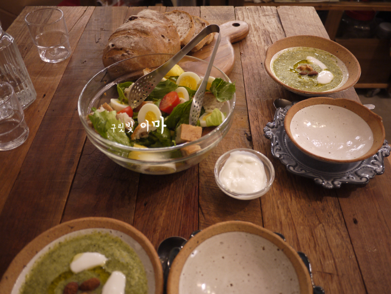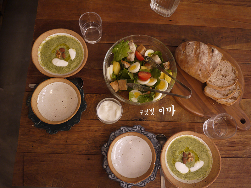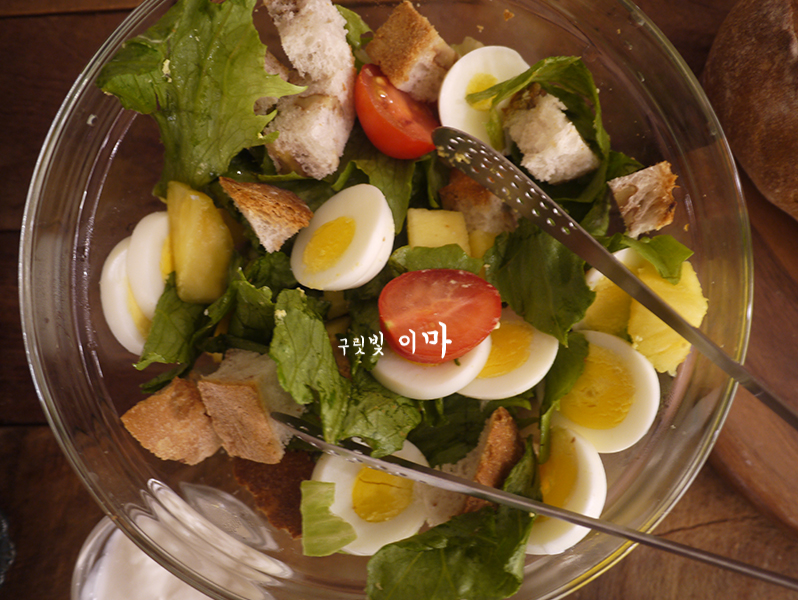 빵으로 사심 가득 넣은 샐러드
