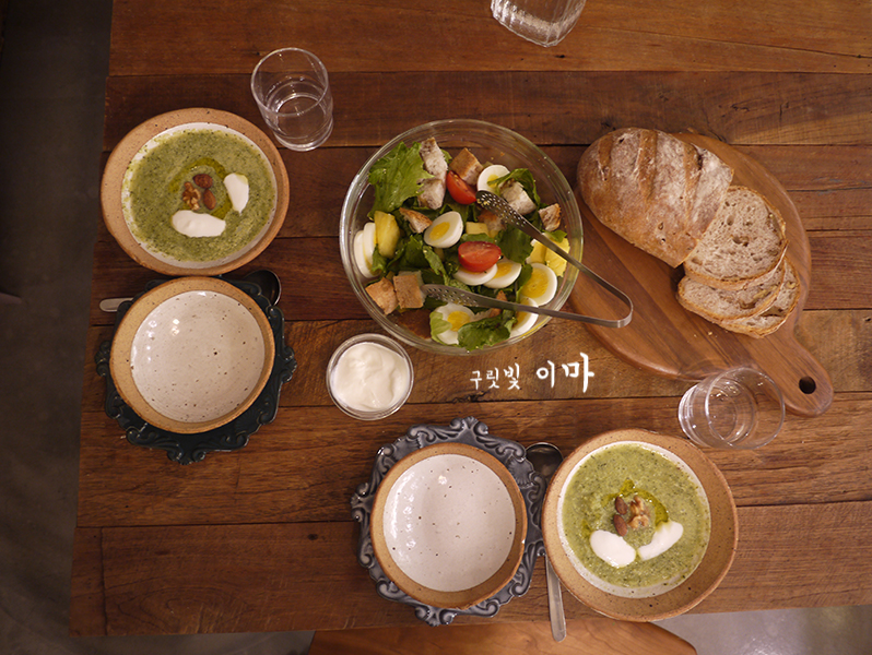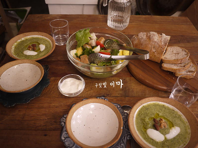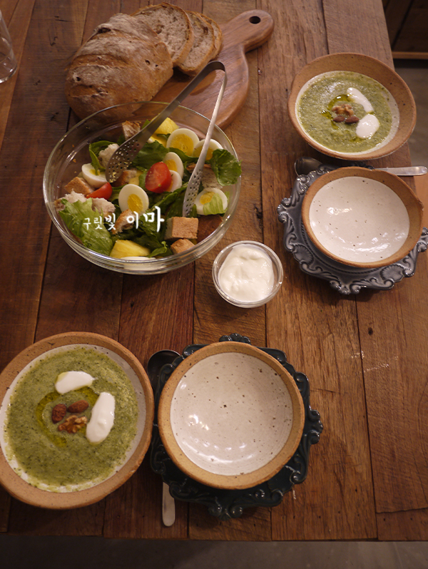 건강한 완두콩스프까지 올려서
