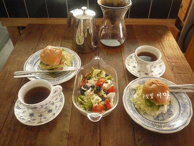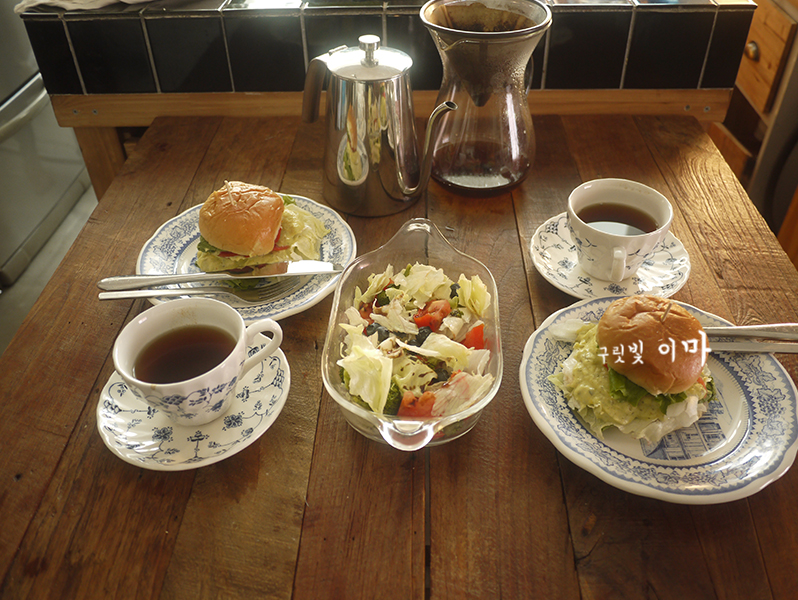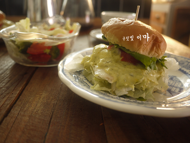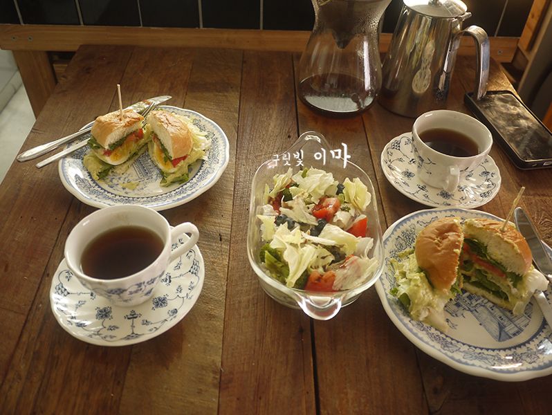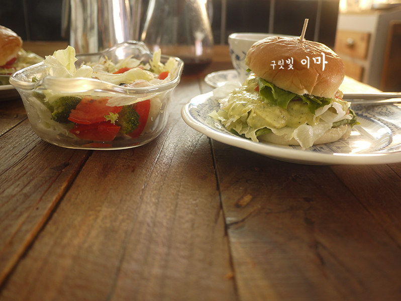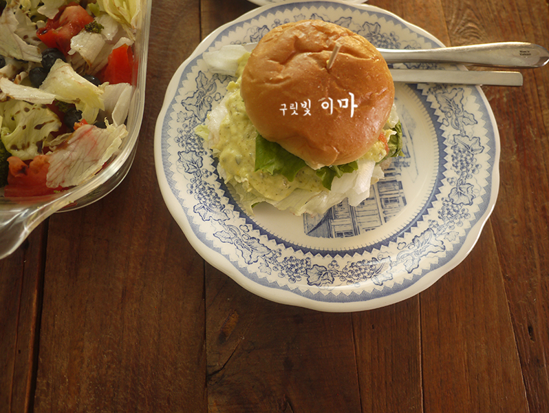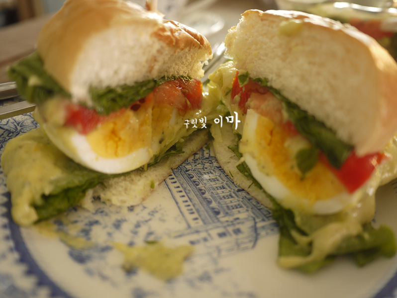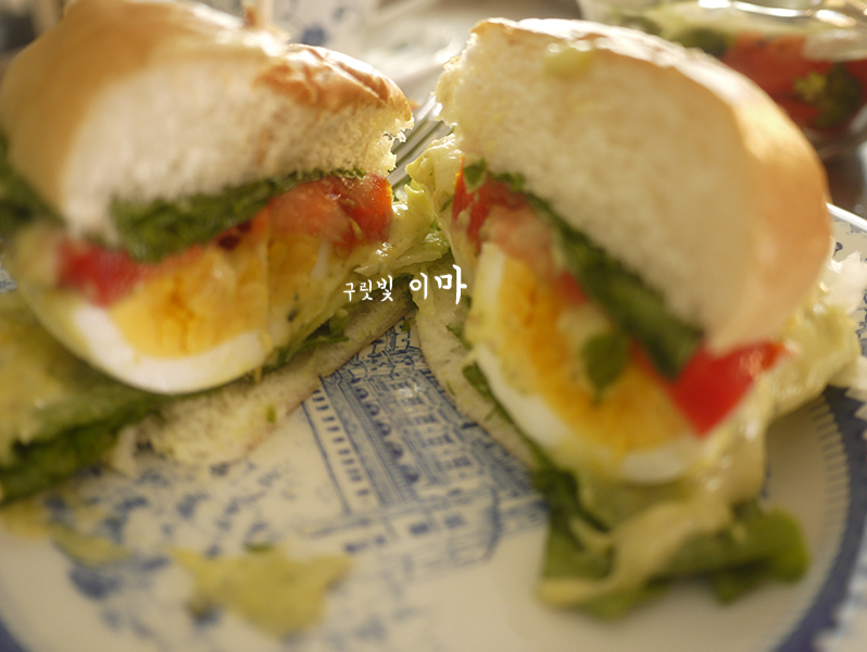 각종 야채들과 달걀프라이만 들어간 샌드위치~