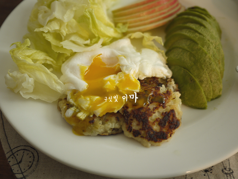 나름 챙긴 수란과 맛만 함박스테이크 ㅋㅋㅋ
