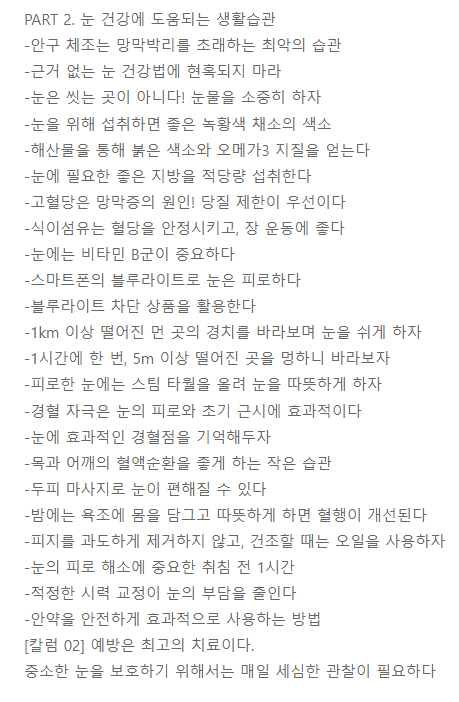 특히 part2는 제가 알고 싶은 '눈건강을 위한 생활습관'이라