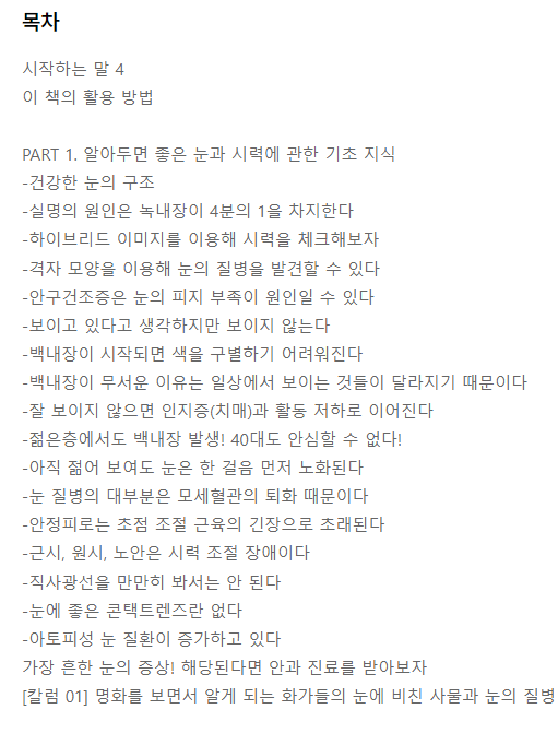 눈 건강을 지키기 위한 노력을 하고 싶어서 책을 찾기 시작했어요.