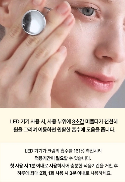 크림을 얼굴에 바르자마자 LED 기기를 사용하는 게 좋아요.