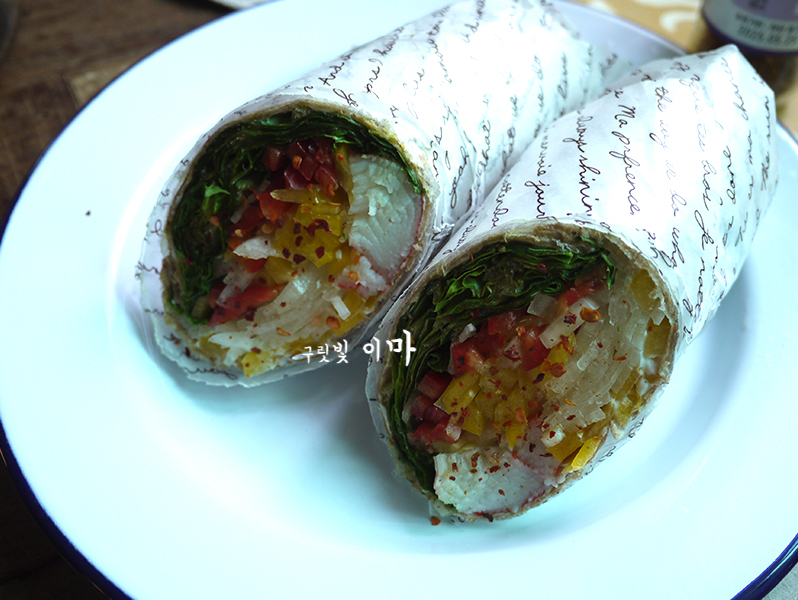 그냥 식빵보다 통밀또띠아가 훨씬 얇아서 그런지