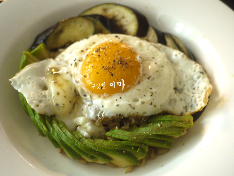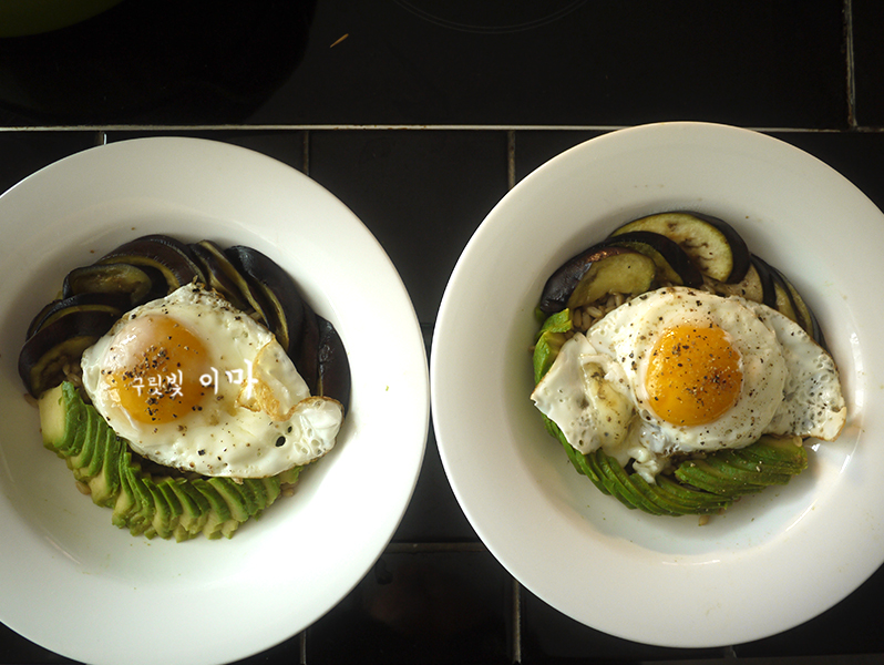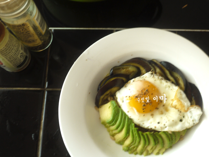 올리브 오일과 후추로 맛을 낸 구운 가지까지 추가했어요.
