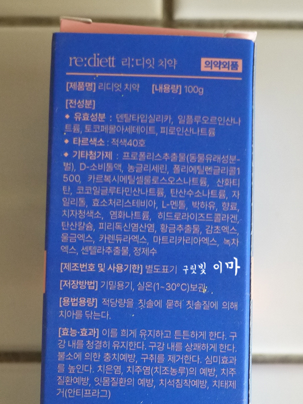 이 치약엔 특이점이 '콜라겐이 함유'라서 잇몸에 도움을 주는 치약이 맞는 거 같아요.