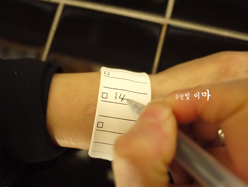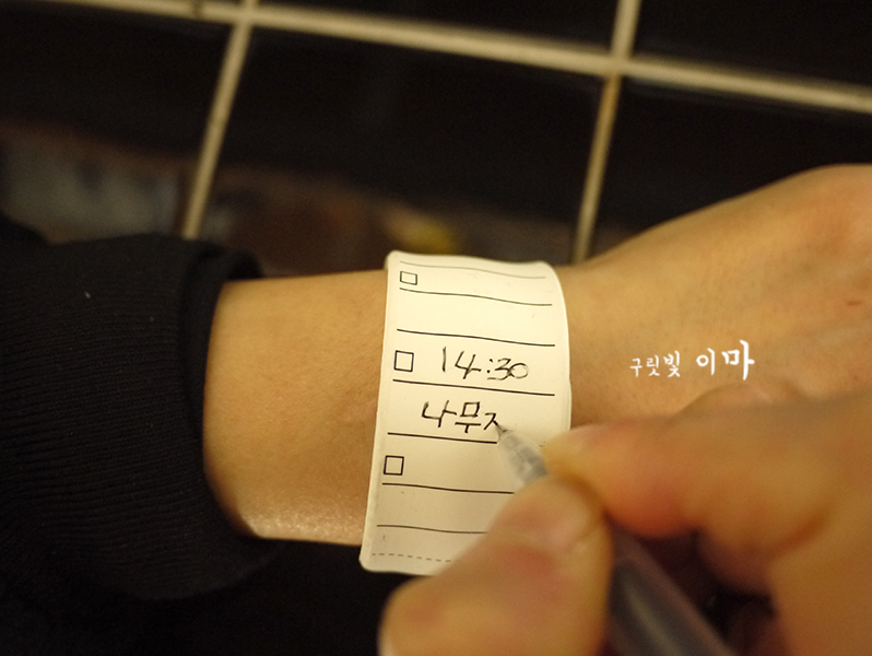 배우 최강희님이 손목 메모지를 이용해서