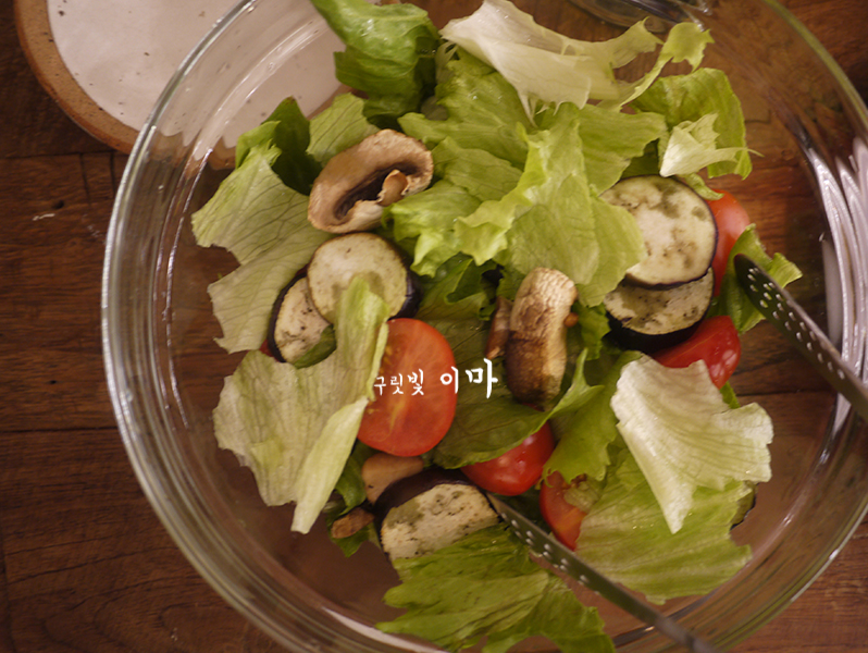오리엔탈 소스가 가득한 아삭아삭한 샐러드까지 먹음