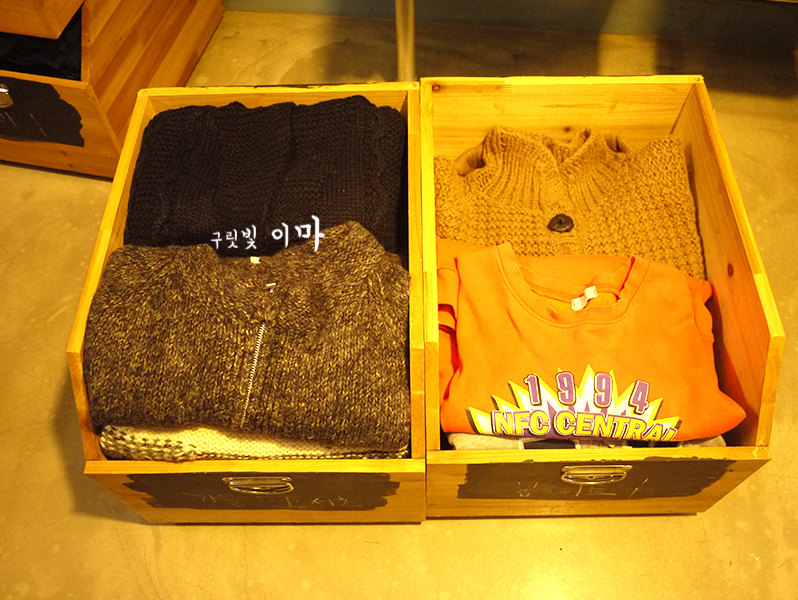 수많은 각각 다른 크기와 디자인과 색상의 옷들을