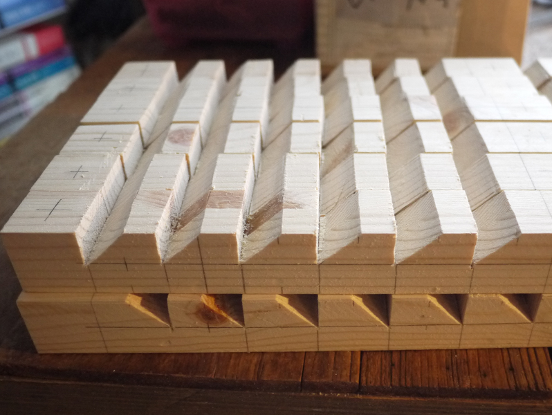 같은 사이즈로 재단한 나무에
