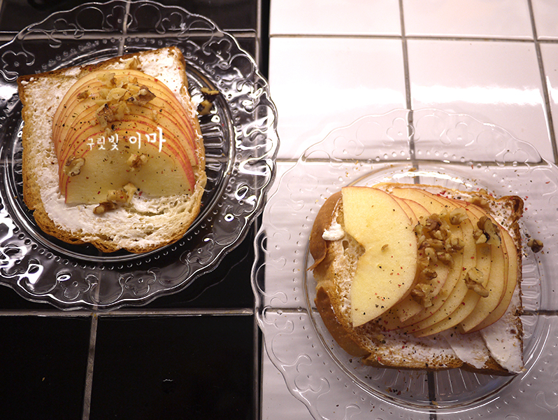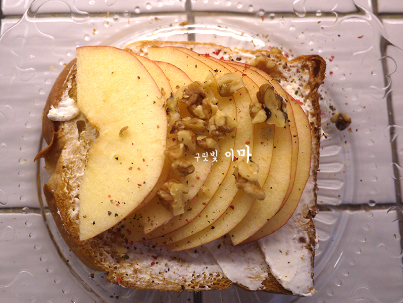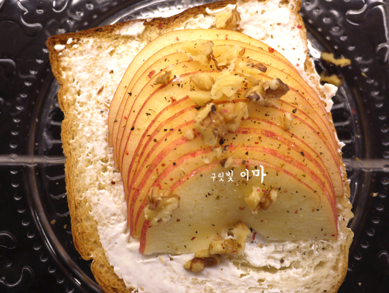 사과에 크림치즈를 올려 먹으려다