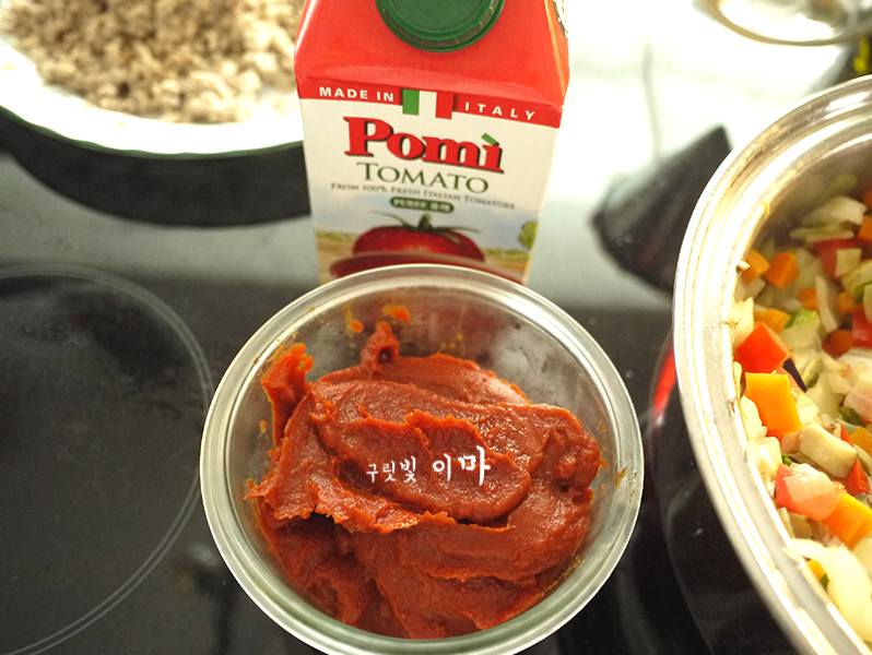 토마토페이스트나 진한 토마토소스를 꼭 넣어줘야 하기 때문에