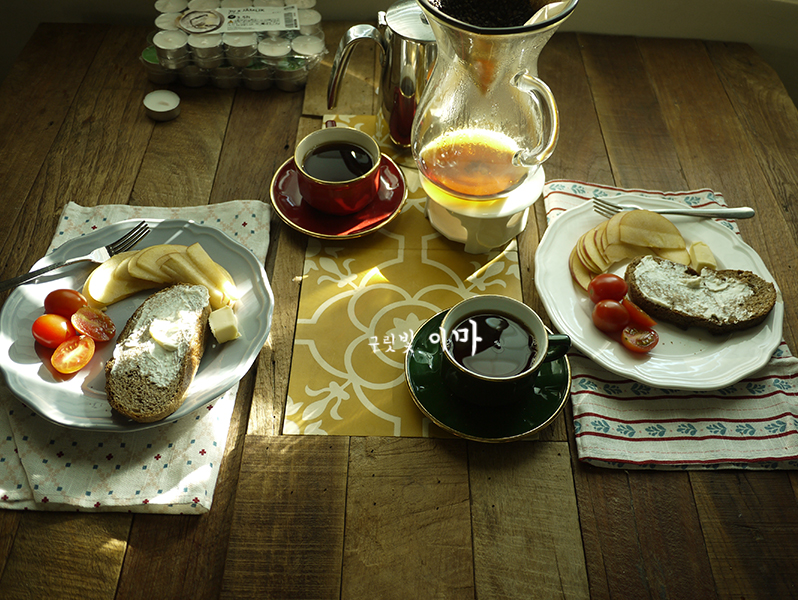 때마침 제가 좋아하는 햇살이 식탁에 드리우고
