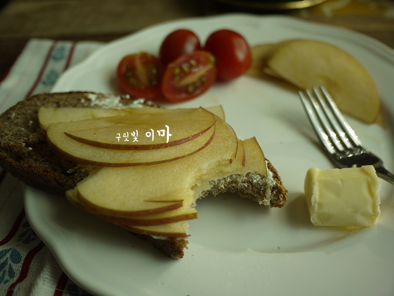 오븐에 살짝 구워 바삭하면서 거친 호밀빵에