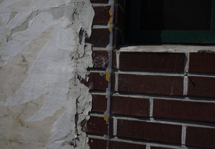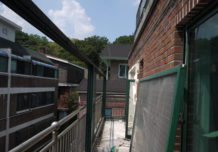 천장에 턱이 있을 뿐만 아니라, 스티로폼이 드러나고.... 확장을 한 베란다 부분은 벽지를 벗겨내도 덕지덕지 발라져 있는 하연 무언가! 가 빨간 벽돌에 흉측하게 만들고.... 암튼 이곳저곳 웃음이 절로 나오더라고요. 바로 이런 문제점들을 피하지 않고 정면으로 마주할 수 있는, 그런 기회가 '철거'였습니다.