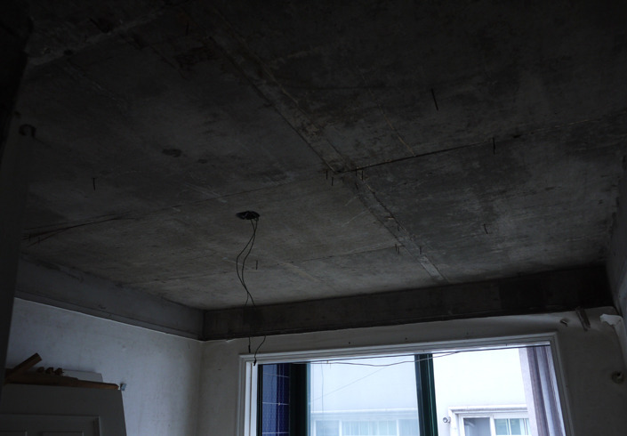 집 안을 관통하여 지나가는 파이프들이 놀랍더라구요. 화장실 천장에도 굵은 파이프가 겉으로 드러나 있구요. 사실, 견적에서 '천장 석고' 비용이 부담스러워서 '노출 천장'으로 바꾼 터였는데, 막상 철거를 하고 나서, 앗차차~ 하고 말았지요. 그것뿐만 아니라,